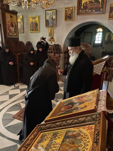 Ο Σεβασμιώτατος Μητροπολίτης Ύδρας, Σπετσών και Αιγίνης κ. Εφραίμ αφίχθη χθες το μεσημέρι (1ης Απριλίου 2022) στις Σπέτσες, όπου και μετέβη στην Ιερά Μονή των Αγίων Πάντων, προκειμένου να συγχαρεί πατρικώς την νεοεκλεγείσα Ηγουμένη με παμψηφία, μοναχή Μαγδαληνή.
