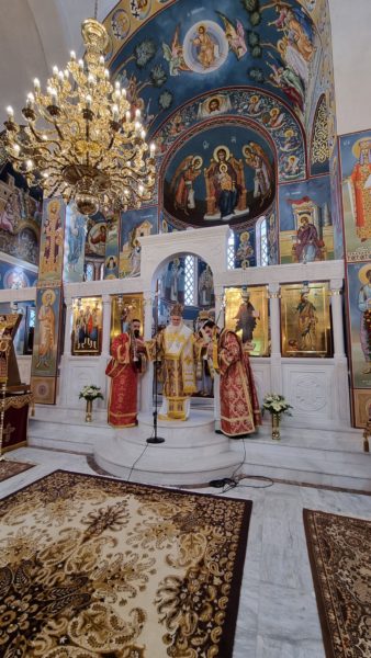 Της Θ.Λειτουργίας προεξήρχε ο Σεβασμιώτατος Μητροπολίτης Φθιώτιδος κ. Συμεών. Συλλειτούργησαν ο Σεβασμιώτατος Μητροπολίτης Λήμνου και Αγίου Ευστρατίου κ. Ιερόθεος και ο Σεβασμιώτατος Μητροπολίτης Ύδρας, Σπετσών και Αιγίνης κ. Εφραίμ.