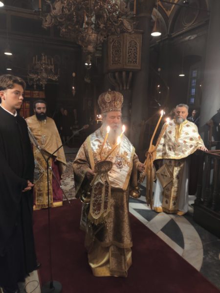 Ο Σεβασμιώτατος μεταξύ άλλων τόνισε χαρακτηριστικά:  «Ζώντας σε μια εποχή συγχύσεως, σε μια εποχή ποικίλων ειδώλων, σε μια εποχή που αλλοιούται ο αξιακός χριστιανικός ορθόδοξος κώδικας, σε μια εποχή που ο μεταχριστιανικός κόσμος ξεκίνησε με την επίκληση της τεχνιτής νοημοσύνης και του τεχνανθρώπου, της επικρατήσεως αυξανομένων διαιρέσεων, της κατάρευσης του θεσμού της οικογένειας και επικρατήσεως του νεοπαγανισμού, πρέπει να ορθοτομούμε την αλήθεια και να ομολογούμε την πίστη μας. Ένας “Χριστός” που καλλιεργεί απλώς το συναίσθημα και ενισχύει την κοσμική εξουσία είναι άγνωστος για την ορθόδοξη Εκκλησία και έτσι ανώφελος για την κοινωνία. Η ορθή πίστη και η ομολογία Χριστού υμνεί και δοξάζει τον ζώντα Θεόν».