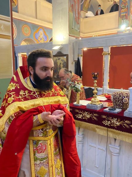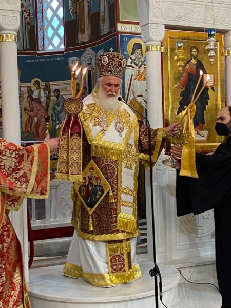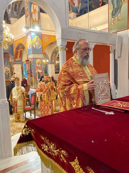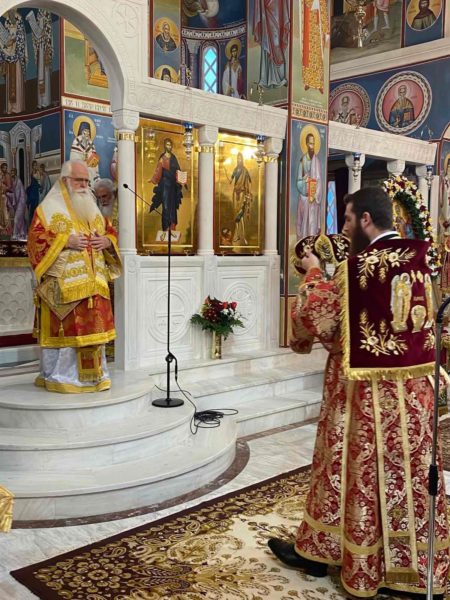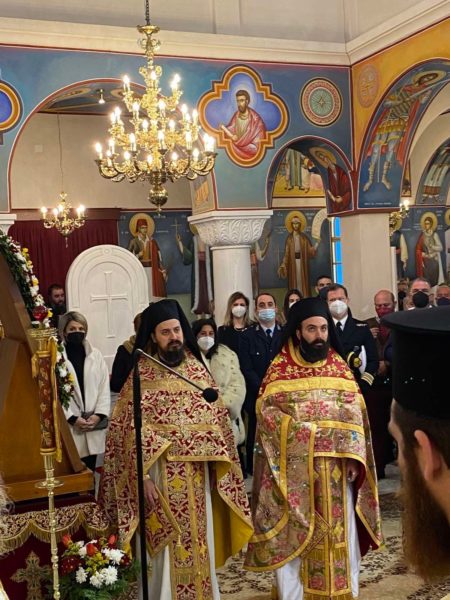 Συλλειτούργησαν οι Σεβασμιώτατοι Μητροπολίτες Λήμνου και Αγίου Ευστρατίου κ. Ιερόθεος και Ύδρας, Σπετσών και Αιγίνης κ. Εφραίμ. Τον θείο λόγο κήρυξε εμπνευσμένα ο Μητροπολίτης Δημητριάδος κ. Ιγνάτιος.
