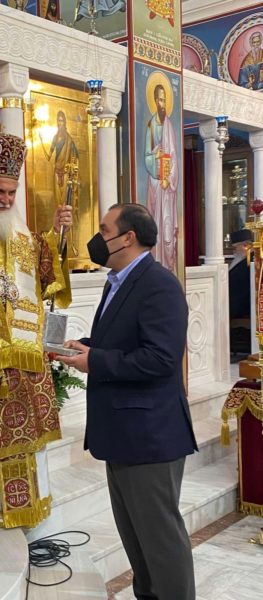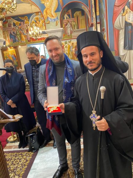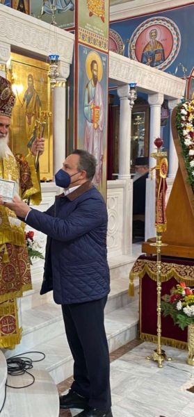Προ της απολύσεως ο οικείος Ποιμενάρχης κ Εφραίμ αφού ευχαρίστησε τους Σεβασμιωτάτους, τον Ιεροκήρυκα π. Γρηγόριο, τον Υφυπουργό Ναυτιλίας κ. Κωνσταντίνο Κατσαφάδο, τον Βουλευτή κ. Νικόλαο Μανωλάκο, τον Διευθυντή της χορωδίας της Ιεράς Μητροπόλεως Καρυστίας, πρωτ. π. Σωτήριο Τσούγκα, τις Αρχές και τους χορηγούς το ζεύγος Καλιαρέκου, τους επέδωσε το συλλεκτικό Μετάλλιο του Ιερού Ναού των Νεομαρτύρων για τα 200 χρόνια από το μαρτύριο των τριών Αγίων και τα 200 χρόνια από την Αρμάτα.