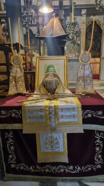 Στη συνέχεια ο Σεβασμιώτατος είχε την ευκαιρία και πάλι να μιλήσει για τον κεκοιμημένο πάλαι ποτέ Ποιμενάρχη της τοπικής Εκκλησίας του Αργοσαρωνικού, κατά τη διάρκεια του καφέ που προσφέρθηκε στο Αρχονταρίκι του ναού.