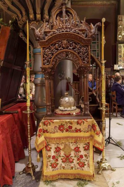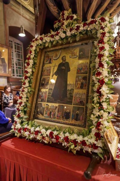 Νωρίτερα τελέστηκε στον Ιερό Ναό του Νεομάρτυρος ο μικρός Εσπερινός και η μεταφορά της Τιμίας Κάρας Του στον Ιερό Καθεδρικό Ναό. Μετά το πέρας του Μεγάλου Εσπερινού ο Ποιμενάρχης παρέθεσε δείπνο στους Αρχιερείς.