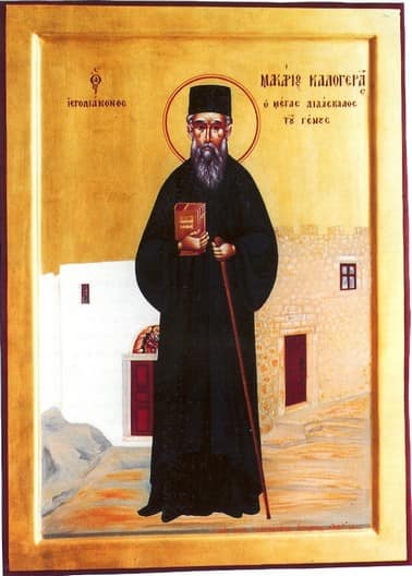 Ο Άγιος Μακάριος ο Καλογεράς, ο Εθνοδιδάσκαλος γεννήθηκε στην Πάτμο το 1688 μ.Χ., και ήταν γόνος εύπορης οικογένειας. Αργότερα πήγε στην Κωνσταντινούπολη για σπουδές και ήρθε σ΄ επαφή με σημαντικές οικογένειες και κληρικούς της Βασιλεύουσας. Μετά το τέλος των πολυετών σπουδών του υπηρέτησε ως Διάκονος πλάι στο Μητροπολίτη Νικομήδειας.