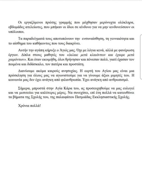 Η ομιλία του διευθυντή, κύριου Ιωάννη Ζαρκαδούλα, στη σημερινή Θεία Λειτουργία του Αγίου Μακαρίου του Καλογερά.