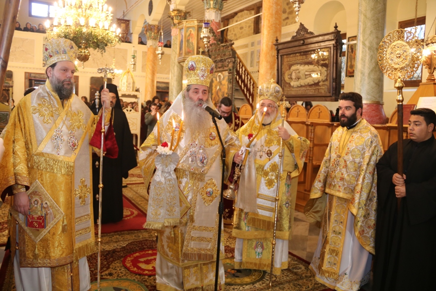 Της ακολουθίας του Πανηγυρικού Εσπερινού προέστη ο Σεβασμιώτατος Μητροπολίτης Νέας Ιωνίας και Φιλαδελφείας κ. Γαβριήλ, ο οποίος και μίλησε επίκαιρα, συγχοροστατούντων των λοιπών Αρχιερέων, του δε Όρθρου και της Θείας Λειτουργίας προέστη ο Σεβασμιώτατος Μητροπολίτης Πειραιώς κ. Σεραφείμ, ο οποίος και κήρυξε τον θείο λόγο, συλλειτουργούντων των Σεβασμιωτάτων Μητροπολιτών Νέας Ιωνίας κ. Γαβριήλ και Διδυμοτείχου κ. Δαμασκηνού.