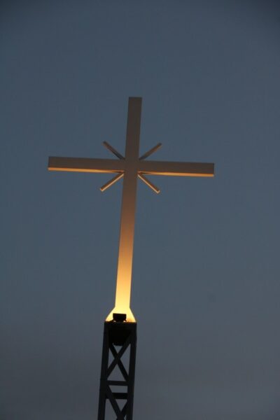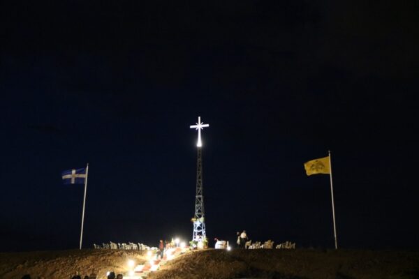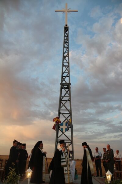 Αγιασμός στον τεράστιο, φωτεινό Τίμιο Σταυρό που έχει τοποθετηθεί σε περίοπτη θέση στον περιβάλλοντα χώρο της Ιεράς Μονής Αγίας Σκέπης – Αγίας Παρασκευής Νέας Βύσσας στα ελληνοτουρκικά σύνορα και φαίνεται μέρα και ιδιαίτερα εντυπωσιακά τη νύχτα στην Αδριανούπολη και τις άλλες τουρκικές περιοχές, πραγματοποιήθηκε χθες βράδυ.