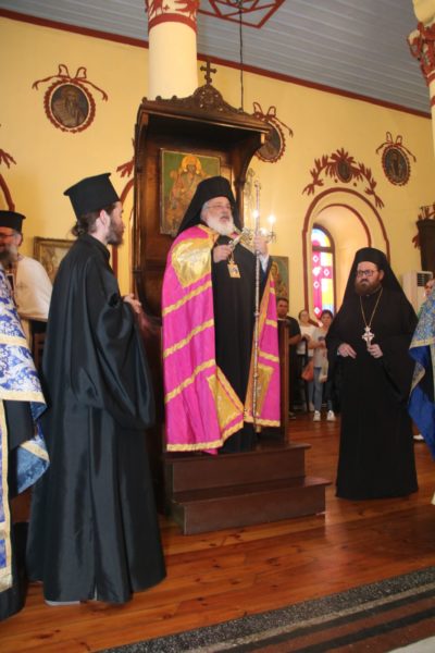 Απευθύνοντας προσφώνησή ο Σεβασμιώτατος ευχαρίστησε τον οικείο Μητροπολίτη για την ευκαιρία της επικοινωνίας, που τους έδωσε η ευγενική πρόσκλησή του, και τόνισε ότι η ενότητα των λαών της Ελλάδος και της Βουλγαρίας στηρίζεται πάνω στην κοινή πίστη, την κοινή παράδοση, στις κοινές αξίες και τους κοινούς αγώνες αμφοτέρων ενάντια στους εξισλαμισμούς. Στην συνέχεια αναφέρθηκε στο ιερό πρόσωπο της Παναγίας και ευχήθηκε Αυτή να προστατεύει και να καθοδηγεί κάθε ορθόδοξο λαό και κάθε πιστό μέλος της Εκκλησίας.