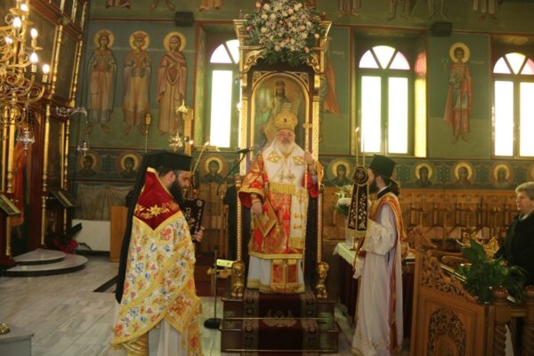Πρό του πέρατος της Θείας Λειτουργίας ο Σεβασμιώτατος εξέφρασε λόγους αγάπης προς τους κατοίκους της ακριτικής αυτής κωμόπολης οι οποίοι, παρά τις δυσκολίες, με κάθε ευκαιρία εκφράζουν την ευλάβειά τους προς τον Χριστό και την Εκκλησία, κρατούν τις όμορφες οικογενειακές παραδόσεις τους και πάνω απ’ όλα με την ετοιμότητά τους και με το γενναίο φρόνημά τους είναι έτοιμοι να υπερασπιστούν την Πατρίδα μας.