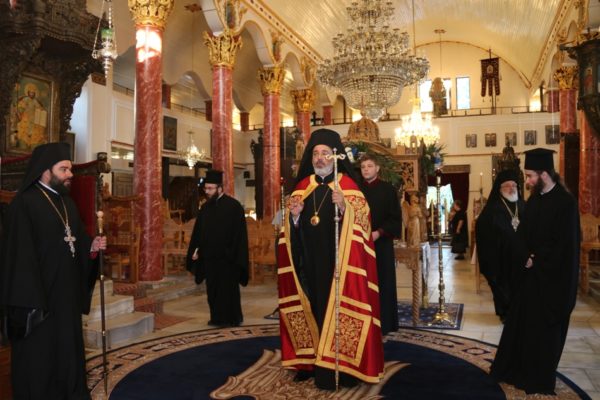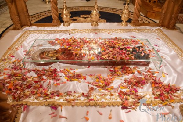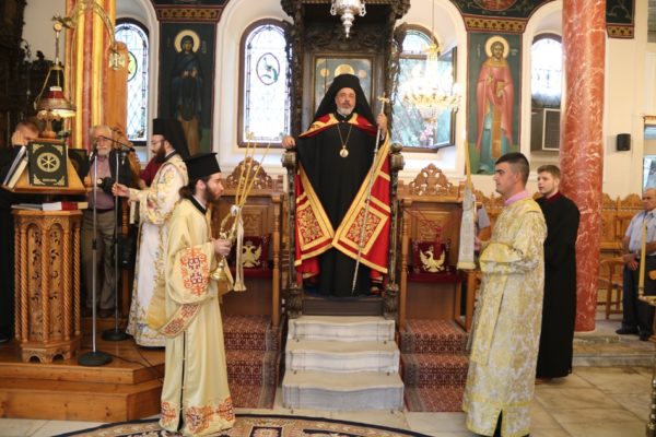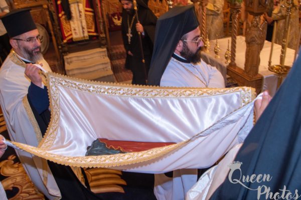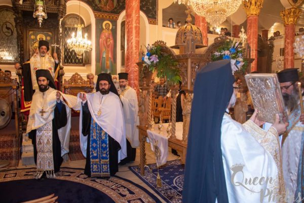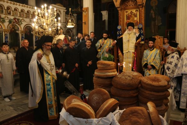 Κατά την τάξη εψάλησαν ενώπιον του ιερού Κουβουκλίου και του Επιταφίου της Παναγίας τα Εγκώμια και εν συνεχεία ο Σεβασμιώτατος ευλόγησε τους άρτους, παρουσία πολυπληθούς εκκλησιάσματος.