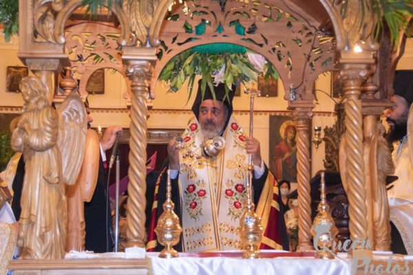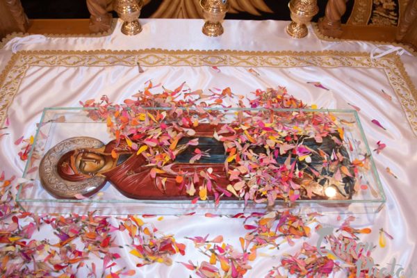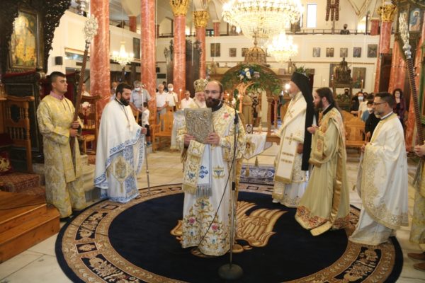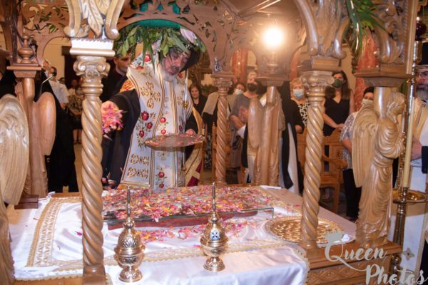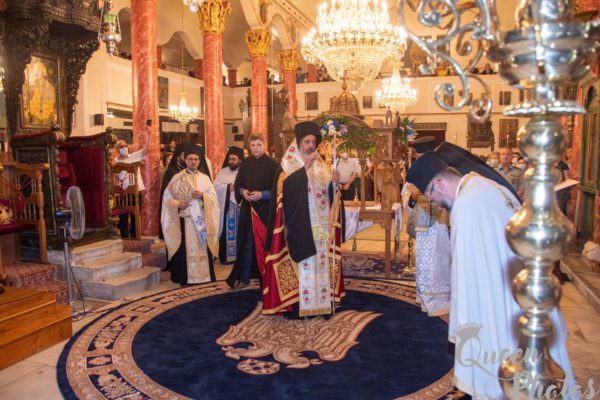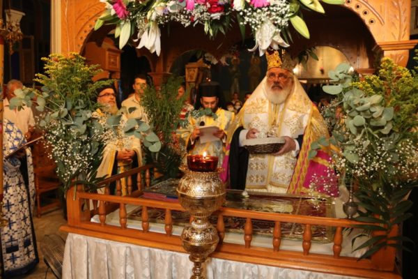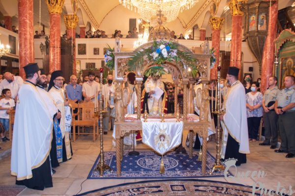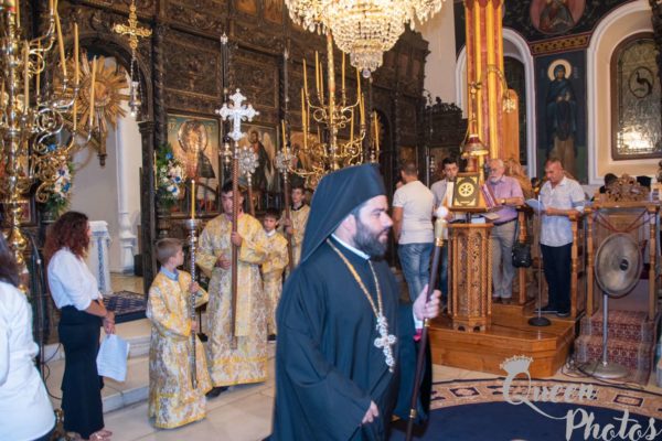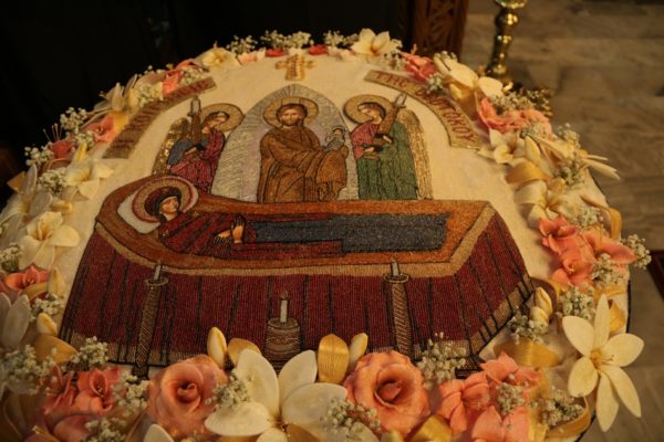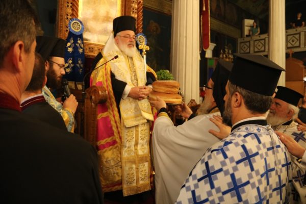 Κατά την τάξη εψάλησαν ενώπιον του ιερού Κουβουκλίου και του Επιταφίου της Παναγίας τα Εγκώμια και εν συνεχεία ο Σεβασμιώτατος ευλόγησε τους άρτους, παρουσία πολυπληθούς εκκλησιάσματος.