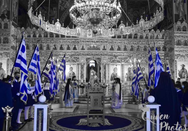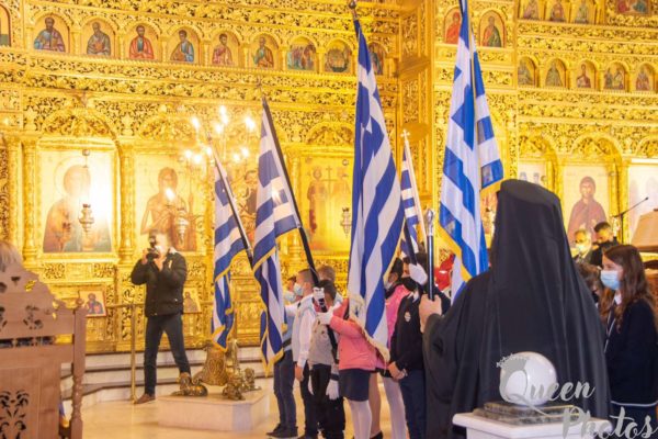 Μετά το πέρας της Θείας Λειτουργίας ακολούθησε η καθιερωμένη Δοξολογία επί τη εθνική εορτή, με την παρουσία αντιπροσωπειών από τα σχολεία της πόλης, το Τρισάγιο στο Μνημείο των πεσόντων και η κατάθεση στεφάνων.