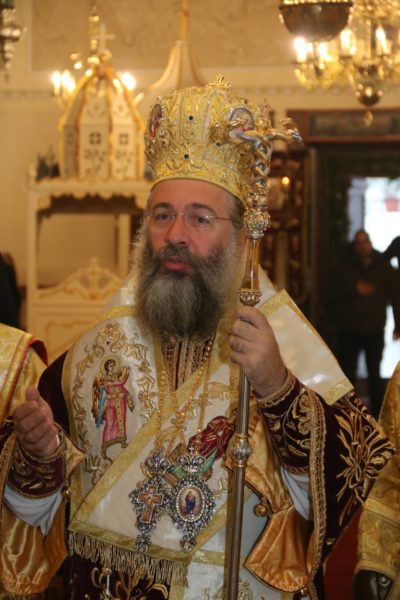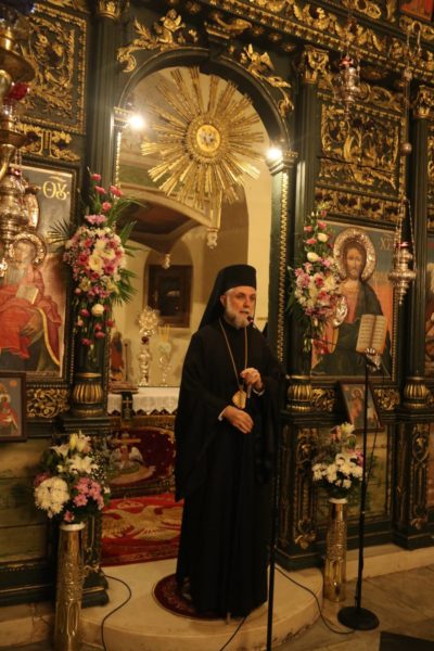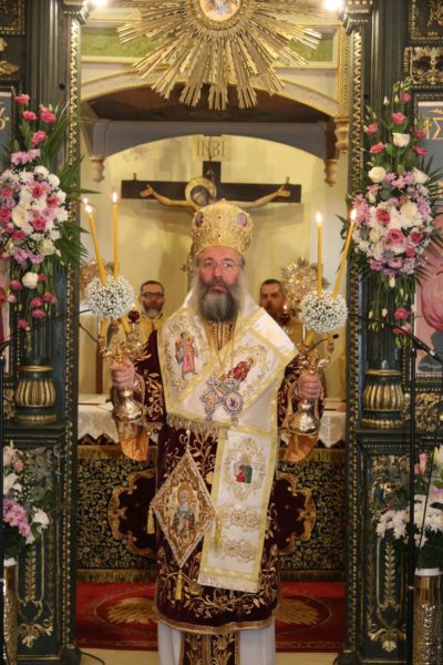 Ο Σεβασμιώτατος αφού καλωσόρισε και ευχαρίστησε τους Αρχιερείς για την συμμετοχή τους στον εορτασμό και τους επισήμους, μεταξύ άλλων σημείωσε· «Ο φετινός εορτασμός, που συμπίπτει με την συμπλήρωση 190 χρόνων από της ανεγέρσεως του Μητροπολιτικού μας Ναού, γίνεται αφορμή να υπομνησθή σε όλους μας ότι ο τόπος αυτός είναι ιερός και άγιος και οι εκκλησίες του, όπως και τα λοιπά σωζόμενα χριστιανικά μνημεία του, μαρτυρούν μέχρι σήμερα ότι είναι τόπος ποτισμένος από το αίμα ομολογητών, από τα δάκρυα οσίων και από τον ιδρώτα δικαίων και τιμίων ανθρώπων. Όλοι αυτοί ανά τούς αιώνες είχαν Οδηγό της ζωής τους τον Σωτήρα και Λυτρωτή μας, στον οποίο και αφιέρωσαν με ευλάβεια, παρά τις ποικίλες αντιξοότητες στα δύσκολα χρόνια των διωγμών και του κατατρεγμού, ό,τι πολυτιμώτερο, ό,τι ομορφότερο και ό,τι αγιώτερο κουβαλούσαν στο θησαυροφυλάκιο της καρδιάς τους. …
