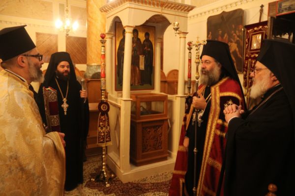Προσκεκλημένοι του οικείου Μητροπολίτου κ. Δαμασκηνού στις λατρευτικές Συνάξεις προσήλθαν και συμμετέσχον ο Σεβ. Μητροπολίτης Ρεθύμνης και Αὐλοποτάμου κ. Πρόδρομος, ο οποίος προέστη του Όρθρου, της Θείας Λειτουργίας και κήρυξε τον Θείο λόγο, ο Σεβ. Μητροπολίτης Γόρτυνος και Μεγαλουπόλεως κ. Νικηφόρος, ο οποίος χοροστάτησε στον Πανηγυρικό Εσπερινό και ο κατά σάρκα αυτάδελφός του Θεοφ. Επίσκοπος Σκοπέλου κ. Νικόδημος.