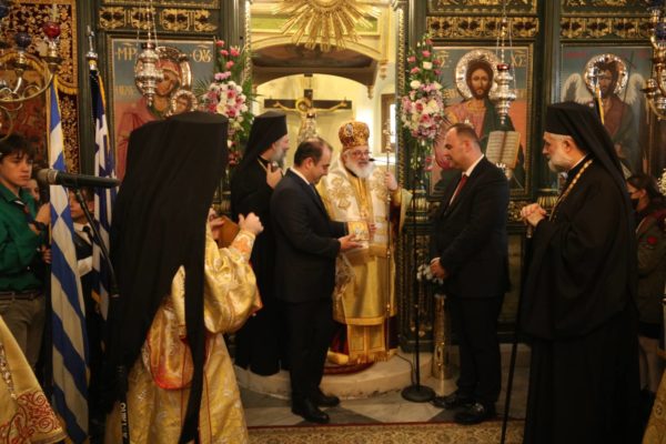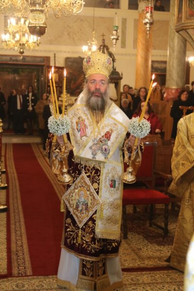 Ο Σεβασμιώτατος αφού καλωσόρισε και ευχαρίστησε τους Αρχιερείς για την συμμετοχή τους στον εορτασμό και τους επισήμους, μεταξύ άλλων σημείωσε· «Ο φετινός εορτασμός, που συμπίπτει με την συμπλήρωση 190 χρόνων από της ανεγέρσεως του Μητροπολιτικού μας Ναού, γίνεται αφορμή να υπομνησθή σε όλους μας ότι ο τόπος αυτός είναι ιερός και άγιος και οι εκκλησίες του, όπως και τα λοιπά σωζόμενα χριστιανικά μνημεία του, μαρτυρούν μέχρι σήμερα ότι είναι τόπος ποτισμένος από το αίμα ομολογητών, από τα δάκρυα οσίων και από τον ιδρώτα δικαίων και τιμίων ανθρώπων. Όλοι αυτοί ανά τούς αιώνες είχαν Οδηγό της ζωής τους τον Σωτήρα και Λυτρωτή μας, στον οποίο και αφιέρωσαν με ευλάβεια, παρά τις ποικίλες αντιξοότητες στα δύσκολα χρόνια των διωγμών και του κατατρεγμού, ό,τι πολυτιμώτερο, ό,τι ομορφότερο και ό,τι αγιώτερο κουβαλούσαν στο θησαυροφυλάκιο της καρδιάς τους. …