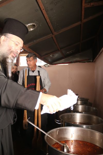 Μετά το πέρας της Θείας Λειτουργίας ο Σεβασμιώτατος και οι επίσημοι προσήλθαν στη συνοικία της Ταμπακιάς, όπου το επ’ ονόματι του Αγίου Αθανασίου προσκυνητάριο. Εκεί οι ευλαβείς ʺψαράδεςʺ της περιοχής τιμώντας τον άγιό τους ετοίμασαν ʺκουρμπάνιʺ, το οποίο ευλόγησε ο επιχώριος Επίσκοπος.