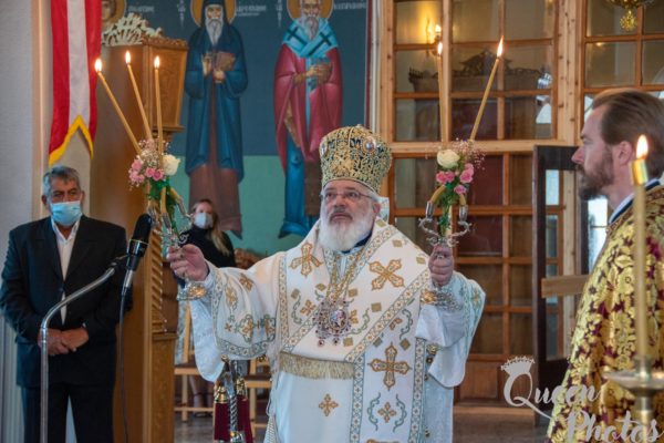 Μετά τα αποκαλυπτήρια ο Σεβασμιώτατος τέλεσε Τρισάγιο εις μνημόσυνον των μακαρία τη λήξει ιδρυτών, δωρητών, συνδρομητών, αρωγών, ευεργετών και κεκοιμημένων μελών του Συλλόγου.