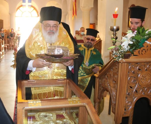 Ο Σεβασμιώτατος εκόμισε εν όψει της πανηγύρεως του Ιερού Ενοριακού Ναού Υψώσεως Τιμίου Σταυρού – Αγίου Γεωργίου Στέρνας, χάριν αγιασμού και ευλογίας των πιστών, απότμημα των ιερών λειψάνων του Ιερομάρτυρος Αγίου Διονυσίου του Αρεοπαγίτου, που φυλάσσεται στο κειμηλιαρχείο της Ιεράς Μονής Αγίας Παρασκευής Διδυμοτείχου, το Σάββατο 11 Σεπτεμβρίου. Στη συνέχεια, προέστη του Εσπερινού πλαισιούμενος από τον Αρχιμ. Αγαθάγγελο Καρκαγκέλη, ο οποίος εργάζεται ιεραποστολικά στη Βραζιλία.