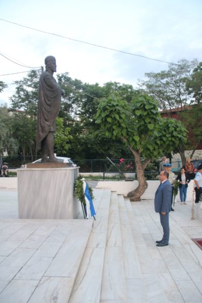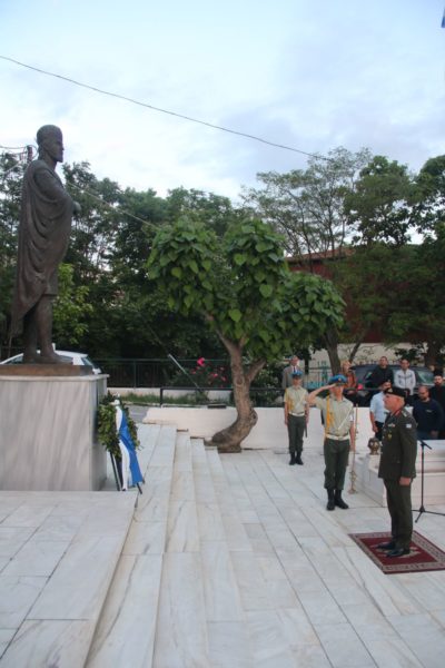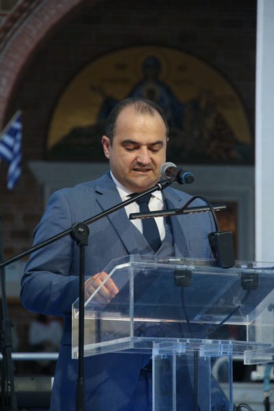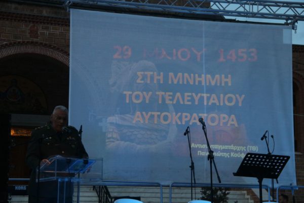 Συγκεκριμένα είπε ότι η εκδήλωση αυτή είναι πρωτίστως εκδήλωση μνήμης για εκείνους που θυσίασαν τη ζωή τους και έπεσαν μαχόμενοι υπερασπιζόμενοι τα τείχη της Πόλεως, απαντώντας στον πολιορκητή Μωάμεθ: “Τὸ δὲ τὴν πόλιν σοι δοῦναι, οὔτ’ ἐμόν ἐστιν οὔτ’ ἄλλου τῶν κατοικούντων ἐν ταύτῃ· κοινῇ γὰρ γνώμῃ πάντες αὐτοπροαιρέτως ἀποθανοῦμεν καὶ οὐ φεισόμεθα τῆς ζωῆς ἡμῶν”· δεύτερον ότι είναι εκδήλωση περισυλλογής μεν για μας τους νεότερους, οι οποίοι θα πρέπει να διδαχθούμε από το παράδειγμά εκείνων και να εμπνευσθούμε από τη θυσία τους, ευθύνης δε για την πρόοδο και την ευημερία του τόπου μας και την ακεραιότητα της Πατρίδας μας. Τιμής, τέλος, προς τα στελέχη της XVI Μεραρχίας οι οποίοι έχοντας ως λογότυπο του σχηματισμού τους τα τελευταία αυτά λόγια του Κωσταντίνου Παλαιολόγου “πάντες αὐτοπροαιρέτως ἀποθανοῦμεν καὶ οὐ φεισόμεθα τῆς ζωῆς ἡμῶν” με γενναίο και ακμαίο φρόνημα υπερασπίζονται τα σύνορα της Πατρίδας μας με αυτοθυσία.