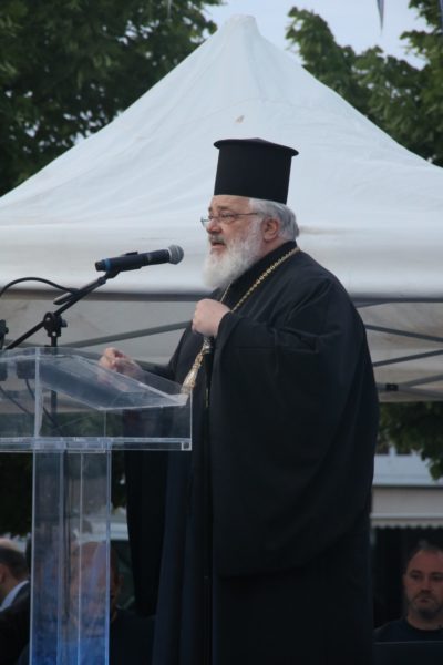Στην προσφώνησή του ο Σεβασμιώτατος έδωσε το στίγμα της εκδήλωσης «Μνήμη – Περισυλλογή και Ευθύνη – Τιμή».