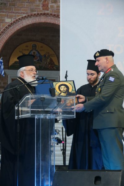 Ο Σεβασμιώτατος σε έκφραση τιμής και αναγνώρισης της προσφοράς των στελεχών της XVI Μεραρχίας προσέφερε στον Διοικητή της Στρατηγό Κωνσταντίνο Καραμανίδη μία εικόνα του ευλογούντος Χριστού, με την ευχή ο Κύριος να κατευθύνει το στράτευμα και να φωτίζει τις δραστηριότητές του. Μετά την προσφώνηση του Σεβασμιωτάτου ακολούθησε χαιρετισμός από τον Δήμαρχο Διδυμοτείχου Ρωμύλο Χατζηγιάννογλου.