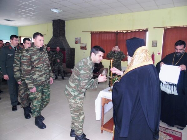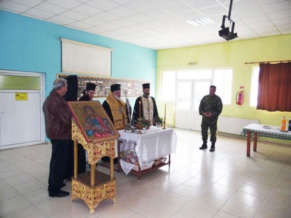 Στη συνέχεια ο Σεβασμιώτατος επισκέφθηκε στο Στρατόπεδο της 50ης Ταξιαρχίας στο Πρωτοκκλήσι και αφού ευλόγησε την Βασιλόπιτα μίλησε στα στελέχη των μονάδων που φιλοξενούνται στο Στρατόπεδο για την αξία του χρόνου κατά την ορθόδοξη πίστη και διένειμε τα κομμάτια της Βασιλόπιτας.