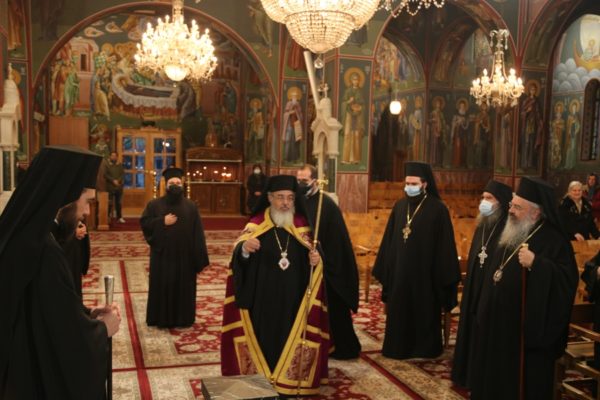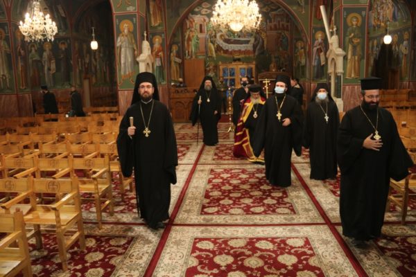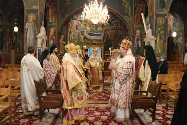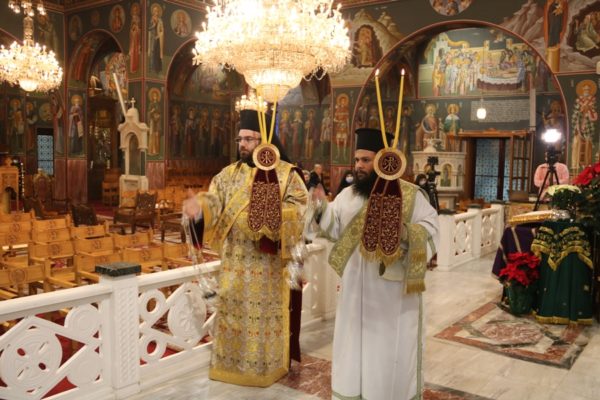 Συλλειτούργησαν οι Σεβ. Μητροπολίτες Γλυφάδος, Ελληνικού, Βούλας, Βουλιαγμένης και Βάρης κ. Αντώνιος, Νικοπόλεως και Πρεβέζης κ. Χρυσόστομος, Λαγκαδά, Λητής και Ρεντίνης κ. Πλάτων και Τρίκκης, Γαρδικίου και Πύλης κ. Χρυσόστομος και εκκλησιάσθη από του Ιερού Βήματος ο Σεβ. Μητροπολίτης Λαρίσης και Τυρνάβου κ. Ιερώνυμος.
