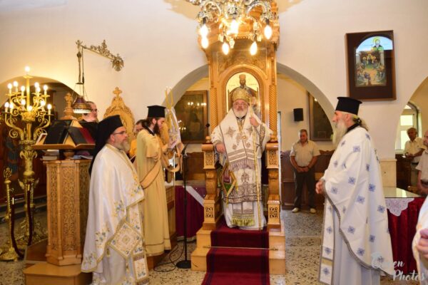 Το πρωί της κυριωνύμου ημέρας, στις 23 Αύγουστού ε.ε., ο Σεβασμιώτατος ιερούργησε στον ωσαύτως πανηγυρίζοντα Ιερό Ενοριακό Ναό Κοιμήσεως Θεοτόκου Πύργου Ορεστιάδος, όπου ερμηνεύοντας το αποστολικό ανάγνωσμα της εορτής τόνισε· «Το συγκεκριμένο αποστολικό ανάγνωσμα, που αναφέρεται στην κένωση του Χριστού, επελέγη από τούς Πατέρες μας να αναγιγνώσκεται κατά την εορτή της Κοιμήσεως της Θεοτόκου, όχι βέβαια τυχαία, αλλά για τρείς βασικούς λόγους. Ο πρώτος λόγος είναι ότι η κένωση, η ενανθρώπηση του Χριστού, εγένετο διά της Παναγίας μας. Από αυτήν ο Χριστός προσέλαβε την ανθρώπινη φύση. Μέσα στην θεοδόχο γαστέρα Της πραγματοποιήθηκε η ένωση θείας και ανθρωπίνης φύσεως –η κένωση. Αυτή δοκίμασε πρώτη την δόξα της κενώσεως του Χριστού… Ο δεύτερος λόγος είναι ότι η Παναγία συμμετείχε, σε όλη την ζωή της, στην κένωση του Χριστού. Καίτοι γνώριζε, από την πρώτη στιγμή, από τον Αρχάγγελο Γαβριήλ, ότι Αυτός που θα κυοφορούσε ήταν ο Μονογενής Υιός και Λόγος του Θεού, εν τούτοις Τον έβλεπε να μεγαλώνει πτωχικά στο σπίτι της, Του προσέφερε στοργή μητρική, αργότερα Τον ακολούθησε στην δράση Του, αλλά και στον Γολγοθά παραστάθηκε δίπλα στο Σταυρό Του, μετείχε ενεργά στην αποκαθήλωσή Του και βιώνοντας όλο το εύρος της ένδοξης κένωσης Του, γνώρισε την εκ νεκρών Ανάστασή Του και την ένδοξη στους ουρανούς Ανάληψή Του… Ο τρίτος λόγος είναι ότι η δόξα και η τιμή στην Παναγία μας συνδέεται αναπόσπαστα με την κένωση και την δόξα του Χριστού. Η Παναγία δεν ήταν απλώς μία ενάρετη γυναίκα, όπως υπήρχαν πολλές ενάρετες γυναίκες στην Παλαιά Διαθήκη, αλλά η Μητέρα του Χριστού, η Υπεραγία Θεοτόκος. Άλλωστε, αυτό ψάλλουμε στον θεομητορικό ύμνο: «…ευλογημένη συ εν γυναιξί και ευλογημένος ο καρπός της κοιλίας σου, ότι σωτήρα έτεκες των ψυχών ημων». Όλα μέσα στην Εκκλησία αναφέρονται στον Χριστό και η δόξα που απολαμβάνει η Παναγία οφείλεται στον «καρπό της κοιλίας» της, αφού αυτή Τον έφερε στον κόσμο… Αδελφοί μου, όλα αυτά δείχνουν ότι η «εν Χριστώ» δόξα συνδέεται με την ταπείνωση και η τιμή προέρχεται από την υπακοή στο θέλημα του Θεού. Πολλοὶ άνθρωποι σήμερα ζητούν δόξα από τους ανθρώπους, επιδιώκουν να απολαύσουν τιμές με ανθρώπινα μέσα. Παρά ταύτα παραμένουν ανικανοποίητοι. Γιατί η ανθρώπινη δόξα είναι κενοδοξία· είναι κούφια και δεν μπορεί να αναπαύσει την ψυχή του ανθρώπου, που ζητά κάτι αυθεντικό, ολοκληρωμένο, αιώνιο. Η Παναγία με την ταπείνωση και την απλότητα, με την υπακοή και την αγάπη, με την θυσία και την προσφορά, μετά τον Χριστό, γίνεται το πρότυπο για όλους μας. Όσες δόξες και τιμές και αν μας προσφέρουν οι άνθρωποι, όσα αξιώματα και εάν αποκτήσουμε, όλα έρχονται και παρέρχονται, εξανεμίζονται, αφανίζονται, όπως τα όνειρα της νύκτας κι όπως ο καπνός διαλύεται στην ατμόσφαιρα. Μάλιστα πολλές φορές αφήνουν πίκρα, θλίψη και πόνο. Αυτό που μένει είναι η υπακοή στο θέλημα του Θεού, η ταπείνωση και η αγάπη, η ενάρετη χριστιανική ζωή».