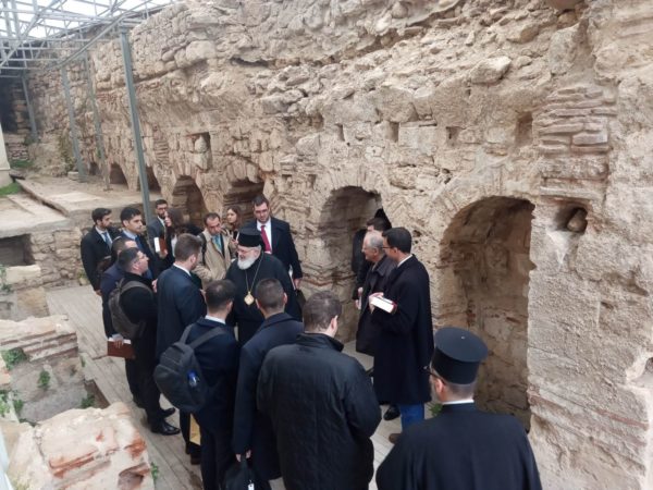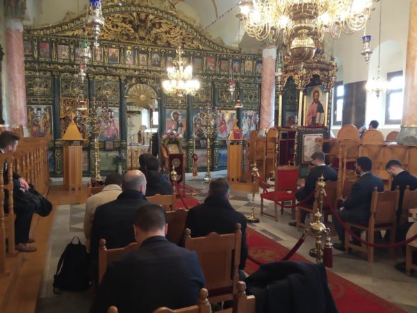 Ο Σεβασμιώτατος είχε την ευκαιρία να φιλοξενήσει τους αυριανούς διπλωμάτες και να τους ξεναγήσει στον ιστορικό μεταβυζαντινό Μητροπολιτικό Ναό του Αγίου Αθανασίου.