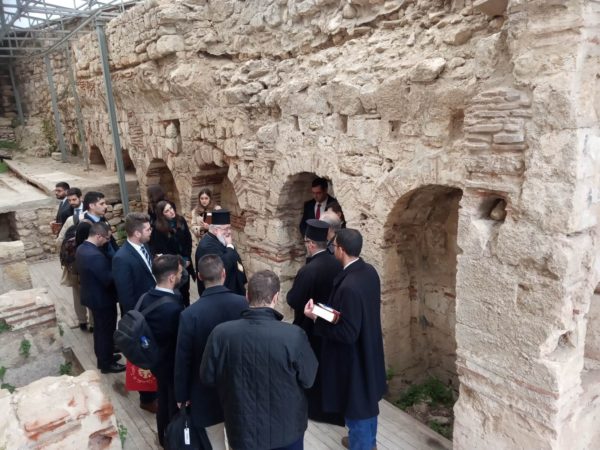 Ο Σεβασμιώτατος είχε την ευκαιρία να φιλοξενήσει τους αυριανούς διπλωμάτες και να τους ξεναγήσει στον ιστορικό μεταβυζαντινό Μητροπολιτικό Ναό του Αγίου Αθανασίου.