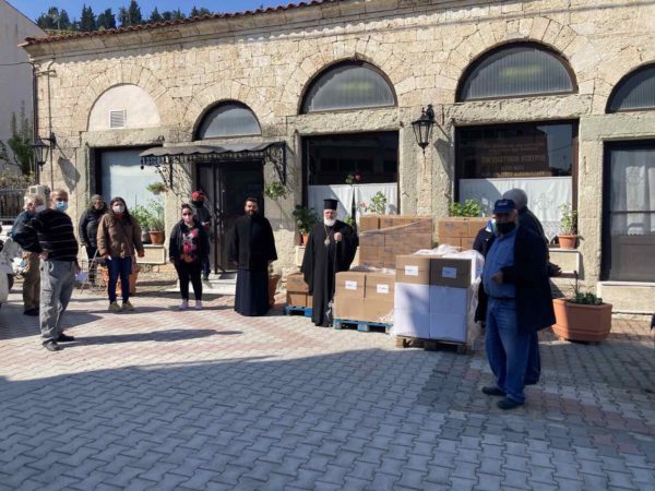 Επίσης την Μεγάλη Τετάρτη διανεμήθησαν, παρουσία του Σεβασμιωτάτου, δέματα επισιτιστικής βοήθειας σε 150 ευάλωτες οικογένειες, προσφορά του Φιλανθρωπικού Οργανισμού της Ιεράς Αρχιεπισκοπής Αθηνών «Αποστολή»» και της υπεραγοράς «Μασούτη» και σε 50 ακόμη πολύτεκνες οικογένειες που είναι προσφορά της Ένωσης Εφοπλιστών.