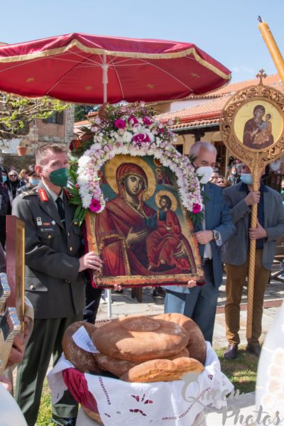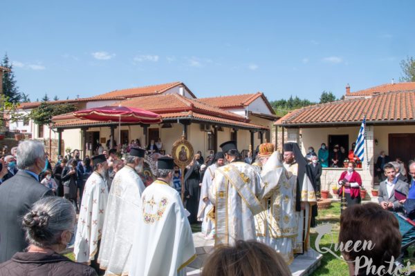 Ο Σεβασμιώτατος αφού ευχαρίστησε τον Καθηγούμενο της Μονής Ιβήρων για την σχετική άδεια συνεχάρη την Γερόντισσα Εφραιμία και την περί αυτήν αδελφότητα για την φροντίδα της Μονής και το πνευματικό έργο που αθόρυβα επιτελούν, απευθυνόμενος δε στο πολυπληθές εκκλησίασμα ευχήθηκε η Παναγία η Πορταΐτισσα, όπως προστατεύει την είσοδο της Μονής των Ιβήρων, έτσι να φυλάττει τα σύνορα της Πατρίδας μας και να προστατεύει τους ακρίτες.