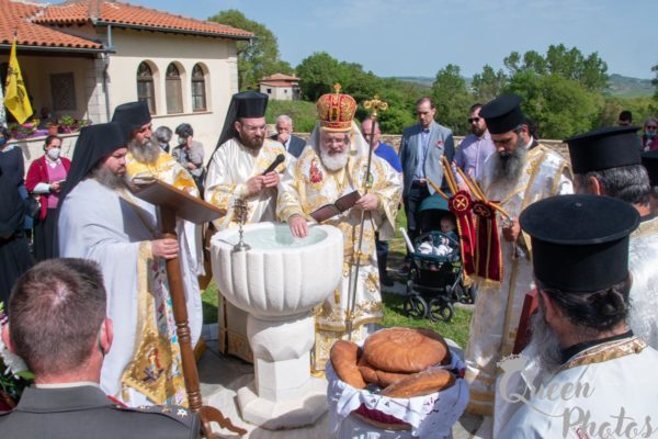 Όπως έχει καθιερωθεί τα τελευταία χρόνια ο Σεβασμιώτατος Μητροπολίτης Διδυμοτείχου, Ορεστιάδος και Σουφλίου κ. Δαμασκηνός, με την άδεια του Καθηγουμένου της Μονής των Ιβήρων Αρχιμ. Ναθαναήλ, μετέβη στο Μετόχι και προέστη της Ευχαριστιακής Συνάξεως, πλαισιούμενος από τον Αρχιμ. Γεώργιο, εκπρόσωπο της κυριάρχου Μονής. Στα πλαίσια της πανηγύρεως ο Σεβασμιώτατος ανέγνωσε την Πατριαρχική Απόδειξη επί τω Αγίω Πάσχα, τέλεσε τον καθιερωμένο αγιασμό στη φιάλη της Μονής, ευλόγησε τους προσκομισθέντες άρτους και τα κόκκινα αυγά.