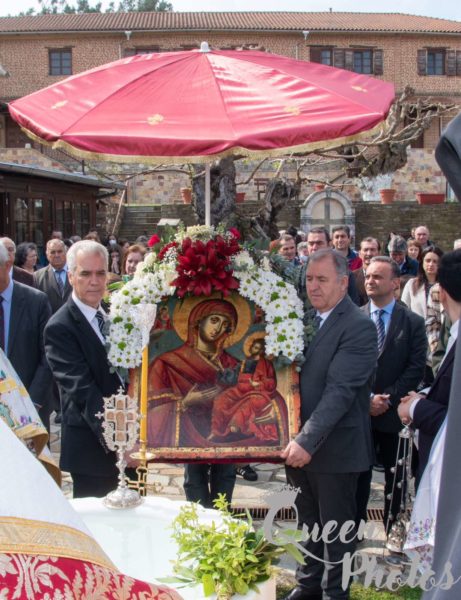 Κατόπιν φιλόφρονος πρόσκλησης του Καθηγουμένου της Μονής των Ιβήρων Αρχιμανδρίτου Ναθαναήλ, της Ευχαριστιακής Συνάξεως, καθ’ ην ανεγνώσθη η «Πατριαρχική Ἀπόδειξις ἐπί τῷ Ἁγίῳ Πάσχᾳ», προέστη ο οικείος Μητροπολίτης Διδυμοτείχου, Ορεστιάδος και Σουφλίου κ. Δαμασκηνός. Ακολούθησε ο Αγιασμός των υδάτων στη Φιάλη και η λιτάνευση της Εικόνος. Τον Ηγούμενο της κυριάρχου Μονής εκπροσώπησε ο Ιερομόναχος Γεώργιος Ιβηρίτης.