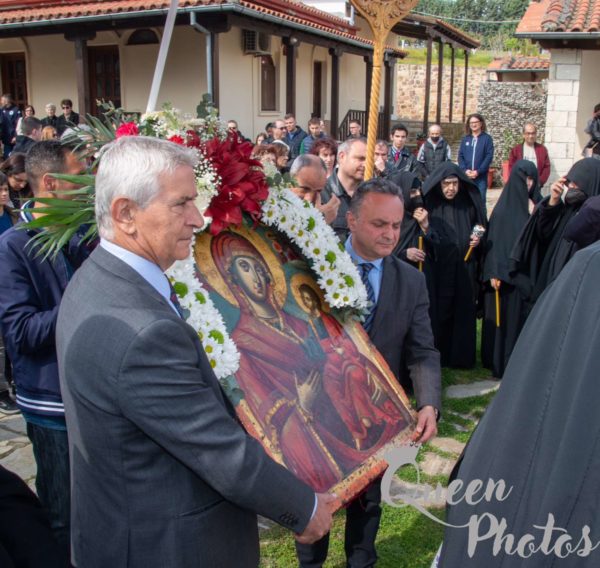 Κατόπιν φιλόφρονος πρόσκλησης του Καθηγουμένου της Μονής των Ιβήρων Αρχιμανδρίτου Ναθαναήλ, της Ευχαριστιακής Συνάξεως, καθ’ ην ανεγνώσθη η «Πατριαρχική Ἀπόδειξις ἐπί τῷ Ἁγίῳ Πάσχᾳ», προέστη ο οικείος Μητροπολίτης Διδυμοτείχου, Ορεστιάδος και Σουφλίου κ. Δαμασκηνός. Ακολούθησε ο Αγιασμός των υδάτων στη Φιάλη και η λιτάνευση της Εικόνος. Τον Ηγούμενο της κυριάρχου Μονής εκπροσώπησε ο Ιερομόναχος Γεώργιος Ιβηρίτης.