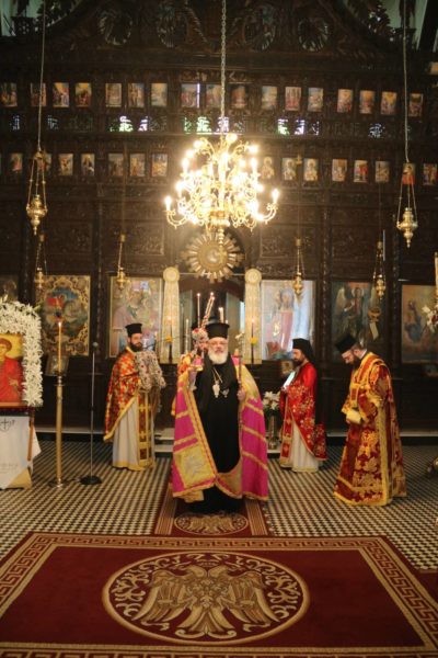 Της Ευχαριστιακής Συνάξεως προέστη ο Μητροπολίτης Διδυμοτείχου, Ορεστιάδος και Σουφλίου κ. Δαμασκηνός, ο οποίος οικοδομώντας τον θείο λόγο τόνισε· «Η Ανάσταση του Κυρίου είναι υπόθεση χαράς και αγαλλιάσεως για τους μαθητές του Κυρίου και τους χριστιανούς κάθε εποχής. Χαίρει μαζί τους ο Ουρανός και οι άγγελοι ψάλλουν τα επινίκια του Αναστάντος Χριστού. Επί γης συγχαίρει η Εκκλησία διότι “θανάτου ἑορτάζομεν νέκρωσιν” και εκ τάφου προέρχεται “ὡς ἐκ παστάδος” ο Νυμφίος Της. Κι εμείς σήμερα, Κυριακή του Αντίπασχα, ο χριστοφόρος λαός του Θεού συγχαίρει με τους μαθητές “ἐχάρησαν οὖν οἱ μαθηταί ἰδόντες τόν Κύριον”, συγχαίρει με τον απόστολο Θωμά για την καλή του ομολογία, συγχαίρει και με τους μάρτυρες της πίστεως και τον σήμερα τιμώμενο Μεγαλομάρτυρα Άγιο Γεώργιο, διότι όπως της Αναστάσεως προηγήθηκε ο Σταυρός και το Πάθος, έτσι και στην περίπτωση του Αγίου Γεωργίου της δόξης και της αίγλης του προηγήθηκε το μαρτύριο και το αίμα…