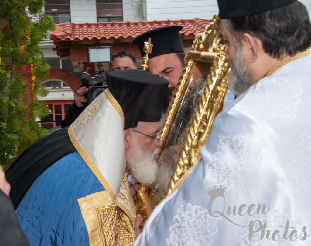 Με πολλή διακριτικότητα και λιτά, άνευ περιττών εκδηλώσεων, λόγω του πένθους, έλαβε χώρα στα προπύλαια του Ιερού Ναού η υποδοχή της ιεράς εικόνος, την οποία συνόδευε ο Σεβασμιώτατος Μητροπολίτης Αλεξανδρουπόλεως κ. Άνθιμος.