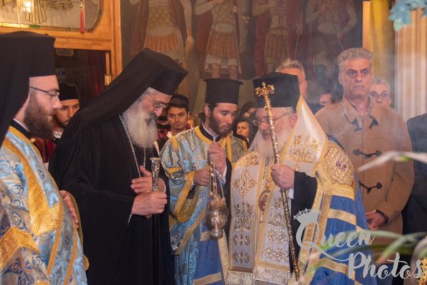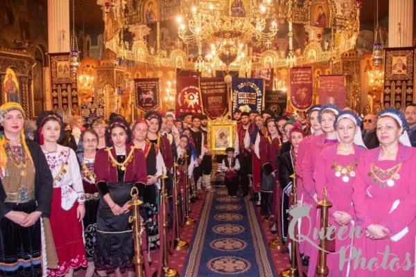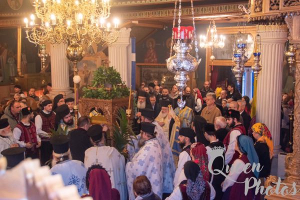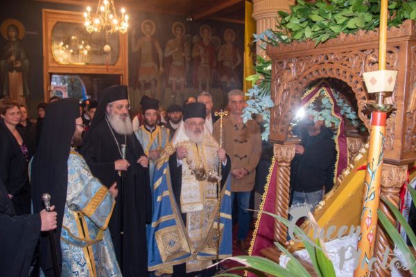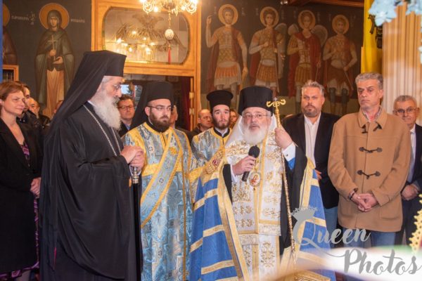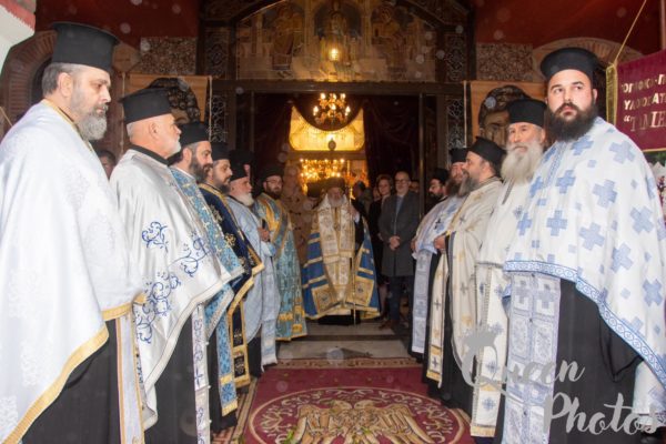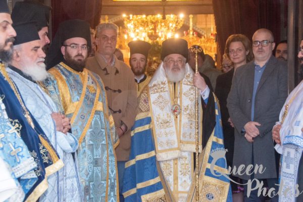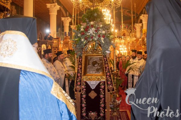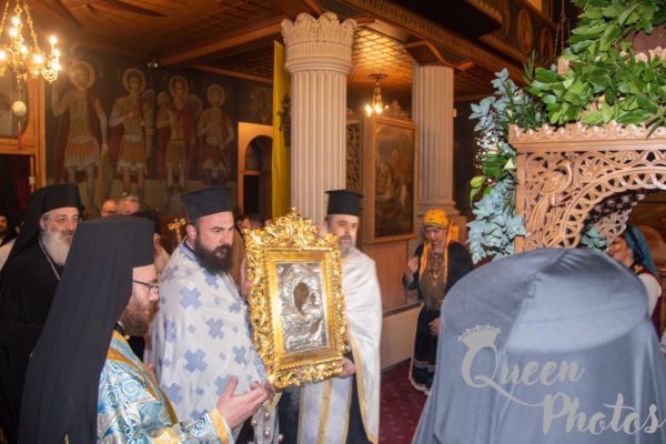 Μετά την υποδοχή της ιεράς εικόνας εψάλη Τρισάγιο υπέρ αναπαύσεως των θυμάτων του τραγικού σιδηροδρομικού ατυχήματος. Ακολούθησε η τέλεση του μυστηρίου του Ευχελαίου και κατόπιν εψάλη το Μέγα Απόδειπνο.