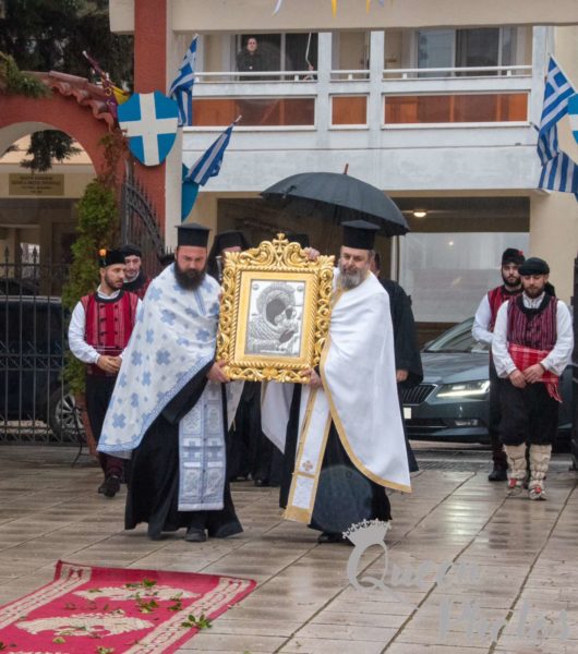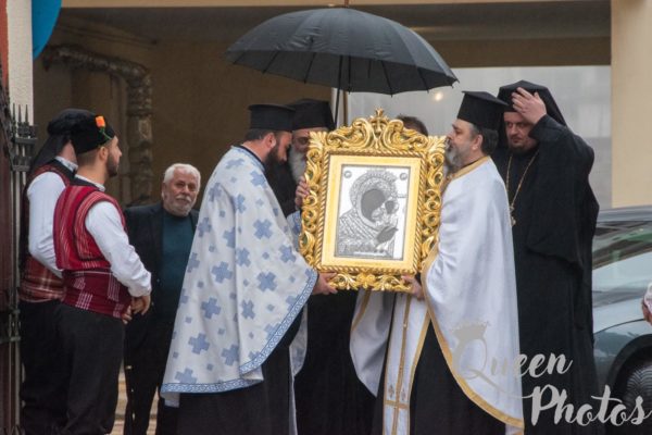 Με πολλή διακριτικότητα και λιτά, άνευ περιττών εκδηλώσεων, λόγω του πένθους, έλαβε χώρα στα προπύλαια του Ιερού Ναού η υποδοχή της ιεράς εικόνος, την οποία συνόδευε ο Σεβασμιώτατος Μητροπολίτης Αλεξανδρουπόλεως κ. Άνθιμος.