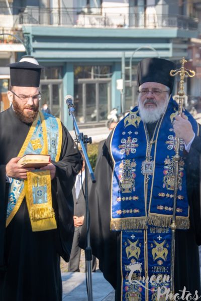 Το πρωί της κυριωνύμου ημέρας ο Σεβασμιώτατος χοροστάτησε στον Όρθρο και ιερούργησε. Στη συνέχεια προέστη της Δοξολογίας επί τη εορτή των Ενόπλων Δυνάμεων και της Επιμνημοσύνου δεήσεως στο Ηρώο της πόλεως.
