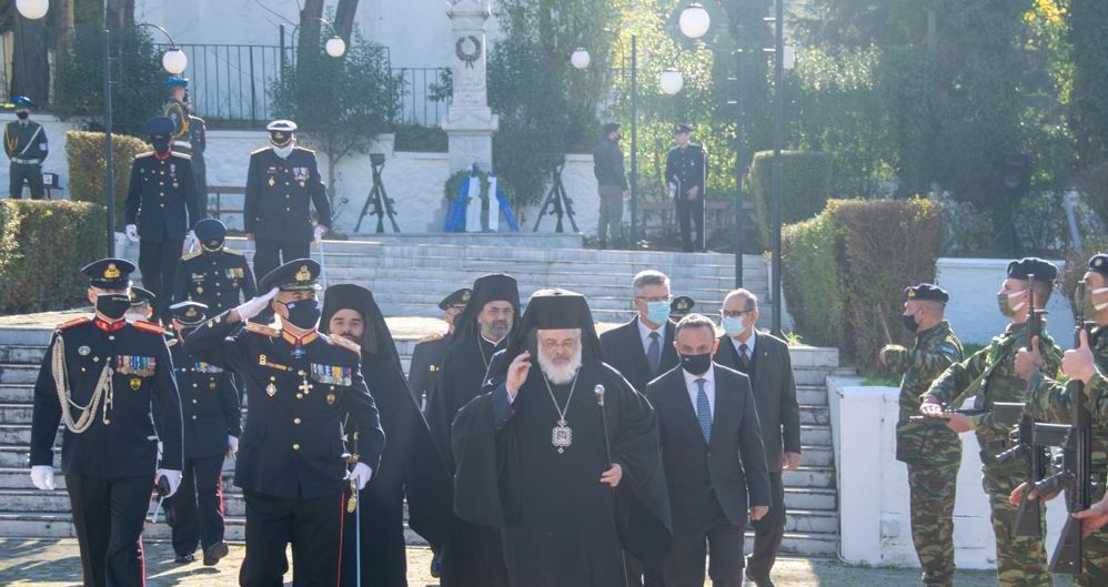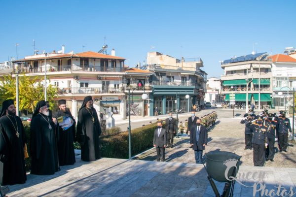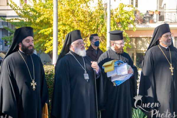 Το πρωί της κυριωνύμου ημέρας ο Σεβασμιώτατος χοροστάτησε στον Όρθρο και ιερούργησε. Στη συνέχεια προέστη της Δοξολογίας επί τη εορτή των Ενόπλων Δυνάμεων και της Επιμνημοσύνου δεήσεως στο Ηρώο της πόλεως.