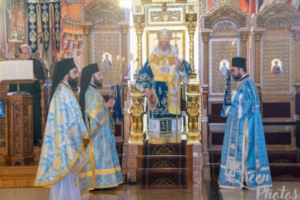 «“Σκηνή του Μαρτυρίου” και “έμψυχο Ναό” ονομάζει ο ιερός υμνογράφος την Παρθένο Μαρία, που επρόκειτο να γίνει ο Θεοχώρητος Ναός για να φιλοξενηθεί ο Μονογενής Υιός και Λόγος του Θεού. Συνηγμένοι και εμείς σήμερα στο επίγειο αυτό Ναό προσήλθαμε να τιμήσουμε την Παρθένο και ν᾿ αποθέσουμε ευλαβικά σ’ Αυτήν την τιμή, τον σεβασμό και την αφοσίωση της καρδιάς μας. Ο Ναός και η συνάθροισή μας σ αυτόν, η Σύναξη της Εκκλησίας, είναι ένα κεφαλαιώδες γεγονός στη χριστιανική μας πίστη και ζωή. Όπως η Παναγία κυοφορεί τον Λυτρωτή έτσι και στην Εκκλησία κυοφορείται ανά τους αιώνας η σωτηρία των ανθρώπων. Κατά τους Πατέρες πρότυπο της Εκκλησίας είναι η Παρθένος Μαρία…