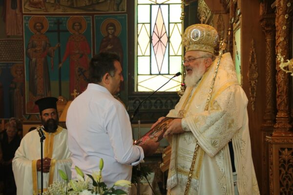 Στο τέλος της Θείας Λειτουργίας ο Σεβασμιώτατος συνεχάρη τον εφημέριο του Ναού π. Θεόδωρο Χριστογιάννη, το Εκκλησιαστικό Συμβούλιο και τους ευλαβείς χωριανούς για την φιλότιμη προσπάθειά τους για την αναβάθμισή της ενορίας. Επίσης ευχαρίστησε για την παρουσία του τον παριστάμενο Αντιδήμαρχο Διδυμοτείχου Παρασκευά Μπιλιακάκη, στον οποίο με την ευκαιρία των ονομαστηρίων του, προσέφερε εις ευλογίαν εικόνα της Παναγίας.