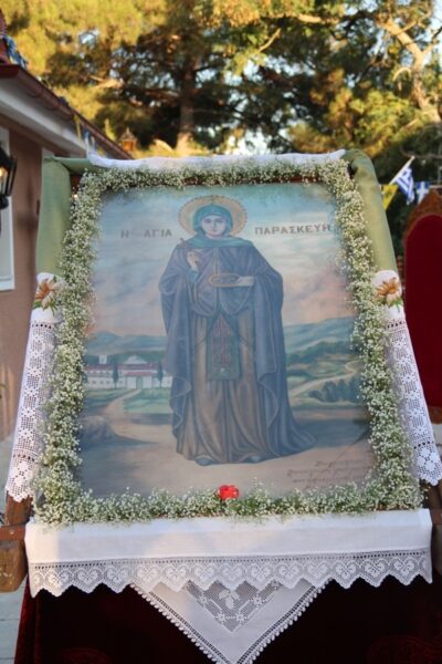 «Η αγία αφού μοίρασε στους πτωχούς την περιουσία της και αφιερώθηκε στο Χριστό, ως χρυσό ζωνάρι έσχε την παρθενία της, την οποία φύλαξε σε όλη της τη ζωή. Ως ένδυμα είχε τον άγιο φόβο του Θεού, που την σκέπαζε στον καθημερινό πνευματικό αγώνα για να κατακτήσει την τελειότητα. Ως πρώτη αξία είχε τα ιδανικά που ακούσαμε στο τροπάριο των στιχηρών «καθαρότητα σώματος και ψυχής την λαμπρότητα κτησαμένη πάντοτε ώφθης άμωμος Παρασκευή αοίδιμε»… Με τον ιερό πόθο προς τον Νυμφίο Χριστό δεν έμεινε ράθυμη και αδρανής. Κατά τις ιεραποστολικές περιοδείες της δίδαξε, νουθέτησε, παρηγόρησε, καθοδήγησε, ελευθέρωσε από τα είδωλα και οδήγησε στο Χριστό πολλούς συνανθρώπους της. Και το μείζον έμεινε άκαμπτη και αλύγιστη μπροστά στις δοκιμασίες, στις απειλές, στο διωγμό και και στα μαρτύρια. Το ηρωικό και σταθερό χριστιανικό φρόνημά της δοκιμάσθηκε σκληρά με πολλά βασανιστήρια. Εκείνη όμως παρέμεινε πιστή στον Κύριο και ακλόνητη…» τόνισε, μεταξύ άλλων, ο Σεβασμιώτατος Μητροπολίτης Διδυμοτείχου, Ορεστιάδος και Σουφλίου κ. Δαμασκηνός, κατά τον Πανηγυρικό Εσπερινό στην Ιερά Μονή Αγίας Παρασκευής Διδυμοτείχου, όπου χοροστάτησε αφ’ εσπέρας, παρουσία του Βουλευτού Έβρου Αναστάσιου Δημοσχάκη, του Διοικητού της XVI Μεραρχίας Στρατηγού Ιωάννου Βασιλάκη, του Αντιδημάρχου Δδυμοτείχου Παρασκευά Μπιλιακάκη, του Προέδρου της Δημοτικής Κοινότητας Διδυμοτείχου Χρήστου Γκρέμου και πολυπληθούς εκκλησιάσματος. Με την ευκαιρία, ο Σεβασμιώτατος συνεχάρη τους εγκαταβιούντες στην Ιερά Μονή αδελφούς για το ζήλο, την εργατικότητα και την πολύτιμη διακονία τους στην τοπική Εκκλησία.