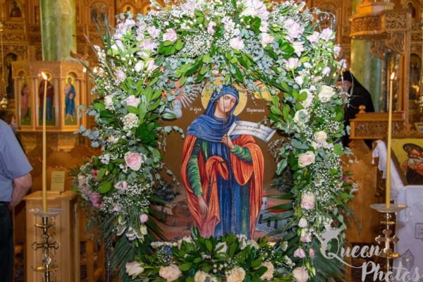 Στην πανηγυρίζουσα Ιερά Μονή Αγίας Σκέπης – Αγίας Παρασκευής Νέας Βύσσης των ιερών ακολουθιών προέστη ο Καθηγούμενος της Μονής Αρχιμανδρίτης Βαρθολομαίος Αστεριάδης, πλαισιούμενος από αδελφούς της Μονής.