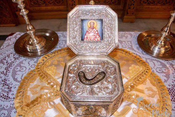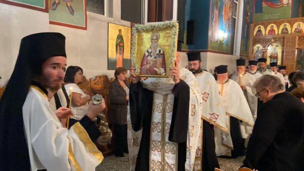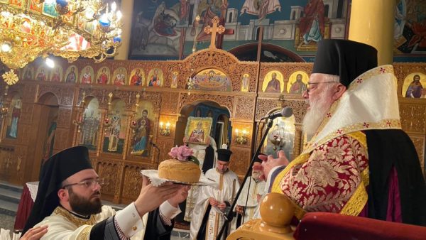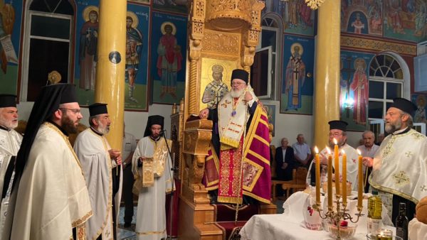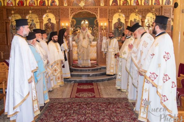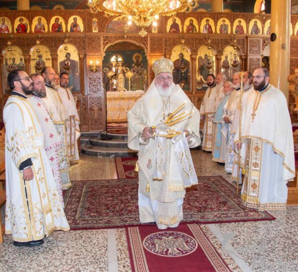 Το πρωΐ της επομένης ο Σεβασμιώτατος ιερούργησε στον πανηγυρίζοντα Ναό και στο τέλος της Θείας Λειτουργίας τέλεσε Τρισάγιο υπέρ αναπαύσεως του εκ των κτιτόρων και ευεργετών του Ναού μακαριστού Μητροπολίτου κυρού Ιεροθέου (Γαρυφάλλου). Κατά την Θεία Λειτουργία τον Θείο λόγο εκήρυξε ο Αρχιμ. Σεραφείμ Ντόβας.