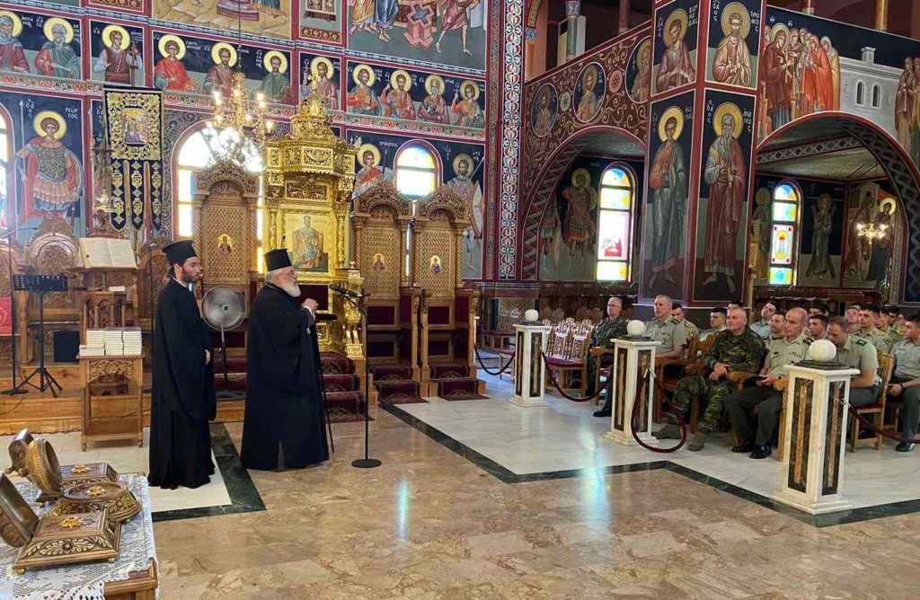 Ο Σεβασμιώτατος μίλησε στους σπουδαστές της Σχολής για την ιστορία της Μητροπόλεως και για την ποιμαντική διακονία της στην ευαίσθητη και ακριτική αυτή περιοχή και διερμηνεύοντας τα αισθήματα της τοπικής κοινωνίας τόνισε ότι όλοι είμεθα υπερήφανοι για τον Ελληνικό Στρατό που με γενναιότητα και ακμαίο φρόνημα υπηρετεί την Πατρίδα και τις αξίες της στις ανατολικές και βόρειες εσχατιές της.