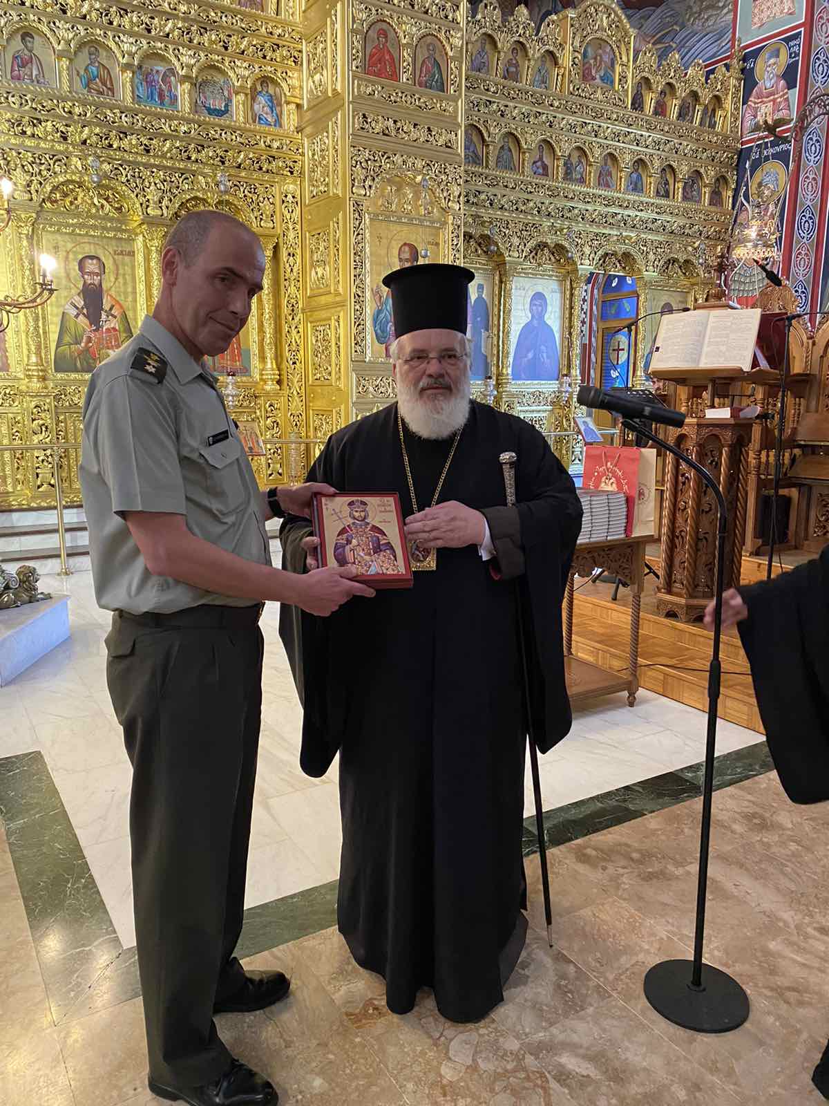 Ο Σεβασμιώτατος σε ανάμνηση της επισκέψεως προσέφερε στο Διοικητή της Σχολής εικόνα του εκ Διδυμοτείχου καταγομένου Αγίου Ιωάννου Βατάτζη, του ελεήμονος βασιλέως, και ο Στρατηγός ανταποδίδοντας προσέφερε στον Σεβασμιώτατο το έμβλημα της Σχολής.