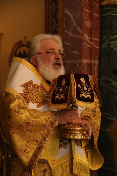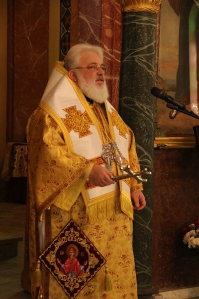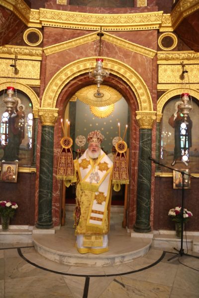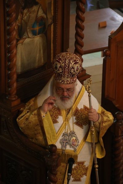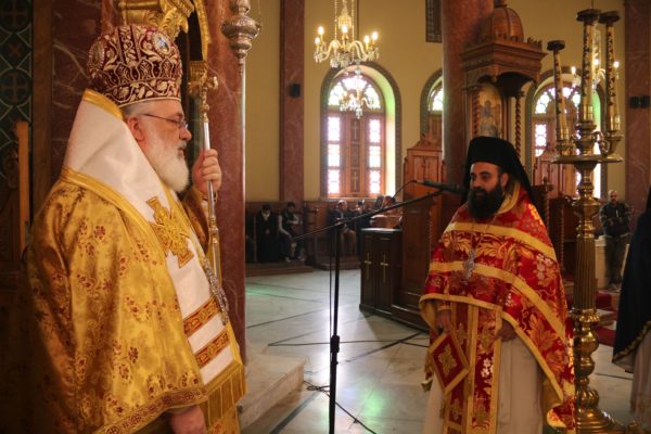 Ο Σεβασμιώτατος στην προσφώνησή του, αφού ευχαρίστησε τον Μακαριώτατο για την κανονική άδεια και ευλογία του για να λειτουργήσει, με συγκίνηση συνεχάρη τον άξιο Ηγούμενο της Μονής π. Δαμασκηνό, με τον οποίο συνδέεται πνευματικά, για την διακονία του στο παλαίφατο Πατριαρχείο Αλεξανδρείας και τον μεγάλο Ιεραπόστολο Πατριάρχη κ.κ. Θεόδωρο και για την φιλότιμη προσπάθειά του για την αναβάθμιση, τον εξωραϊσμό και την διασφάλιση των προνομίων της Μονής.