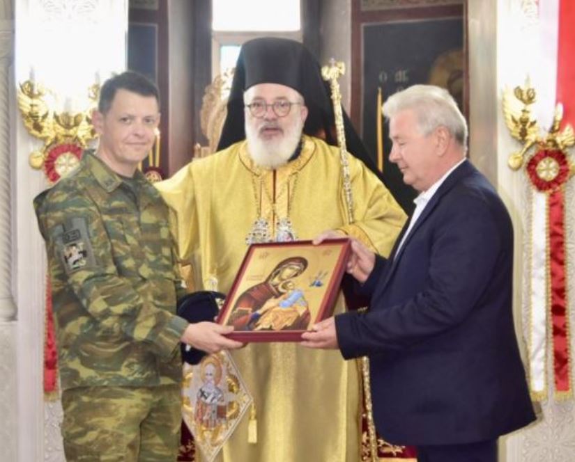 Ανάμεσα στο πολυπληθές εκκλησίασμα προσήλθαν συμπροσευχόμενοι ο αντιδήμαρχος Τριγώνου-Κυπρίνου Μανώλης Χατζηπαναγιώτου και ο Διοικητής της 21ης Τακτικής Διοικήσεως, Συνταγματάρχης Δημήτριος Τσαφούλης, στον οποίο ο Σεβασμιώτατος επι τη αποχωρήσει του, λόγω μεταθέσεως του, του πρόσφερε εικόνα της Παναγίας, της επικαλουμένης «Φοβεράς Προστασίας», σε αναγνώριση της υπευθυνότητος και της συνέπειας που επέδειξε στην εκτέλεση των στρατιωτικών καθηκόντων του, στην νευραλγική θέση του Διοικητού του 21ου Συντάγματος ( στο Τριεθνές Ελλάδος-Τουρκίας-Βουλγαρίας), και σε επιβράβευση της άψογης συνεργασίας του με την τοπική κοινωνία και της ακεραιότητας του ήθους του.